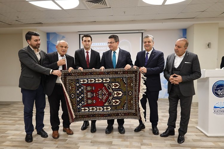 Konferans bitiminde Yahyalı Belediye Başkanı Esat Öztürk tarafından Prof. Dr. Ruhi Ersoy’a Yahyalı El Halısı hediye edildi.