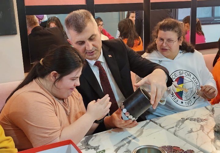 Gölcük Belediye Başkanı Ali Yıldırım Sezer, down sendromlu bireylerin; atıkları el emekleri ile sanata dönüştürme heyecanlarına ortak...