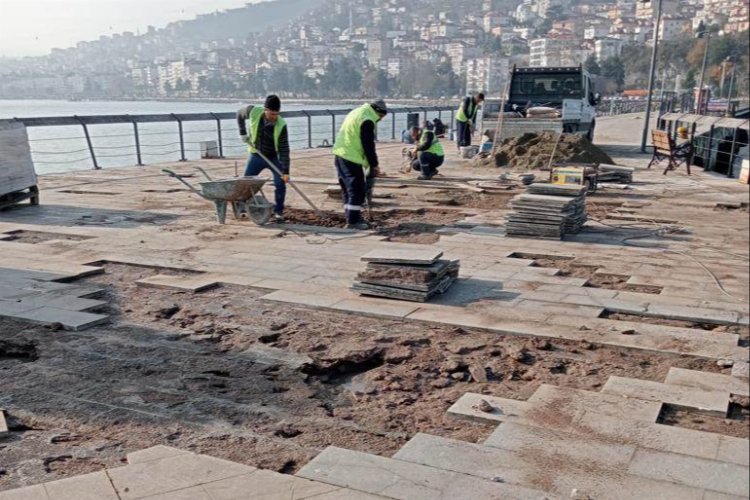 Dalgaların büyük zarar verdiği Altınordu ve Perşembe ilçesindeki rıhtım ve kıyı şeridinin onarılması için harekete geçen Ordu Büyükşehir Belediyesi Parklar ve Yeşil Alanlar Dairesi Başkanlığı ekipleri mermer, ahşap zemin ve elektrik kabloların yenilenmesi için çalışmalarına devam ediyor.
