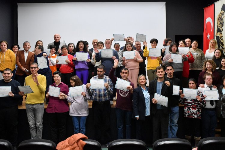 Beylikdüzü Belediyesi Sağlık İşleri Müdürlüğü tarafından Beylikdüzü Atatürk Kültür ve Sanat Merkezi Ayşen Gruda Salonu’nda gerçekleştirilen 2022-2023 Eğitim-Öğretim Yılı Güz Dönemi mezuniyet töreninde özel gereksinimli bireylerin mutlulukları gözlerinden okundu.