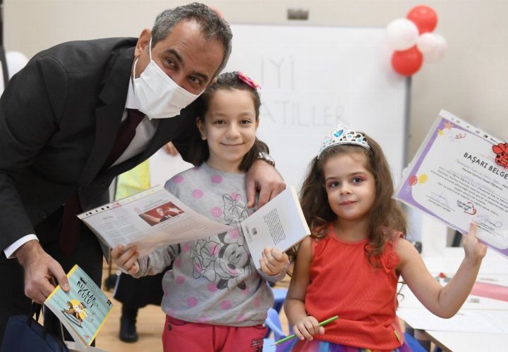 İstanbul Başakşehir Çam ve Sakura Şehir Hastanesinde gerçekleşen törende hastane sınıflarındaki çocuklarla buluşan Özer, öğrencilere karnelerini verdi....