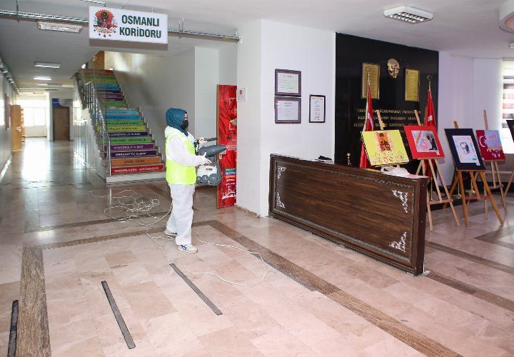 Kayseri’nin Talas Belediyesi dönem tatilinde ilçe genelindeki okullara yönelik detaylı hijyen ve dezenfeksiyon çalışması gerçekleştirdi. Mehmet UZEL...