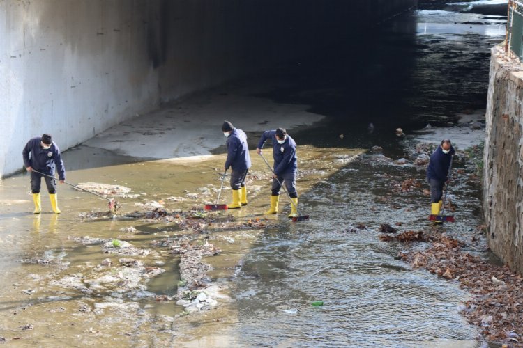 Ekipler, kış mevsiminin getirdiği koku ve görüntü kirliliği oluşturan dere yataklarının temizlenmesi için çalışmalarına devam ediyor.