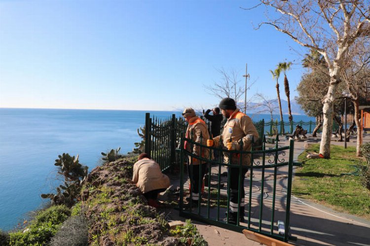 Antalya Büyükşehir Belediyesi, Yavuz Özcan Parkı’ndaki ahşap korkulukların kimliği belirsiz kişiler tarafından kırılarak tahrip edilmesi sonucu metal korkuluk monte ediyor.