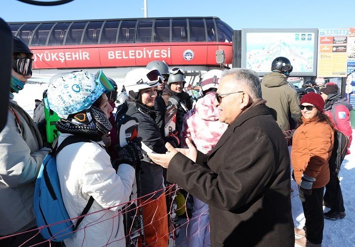 Kayseri Büyükşehir Belediye Başkanı Dr. Memduh Büyükkılıç, Erciyes Kayak Merkezi’nde yerli ve yabancı turistlerle buluştu. Mehmet UZEL...