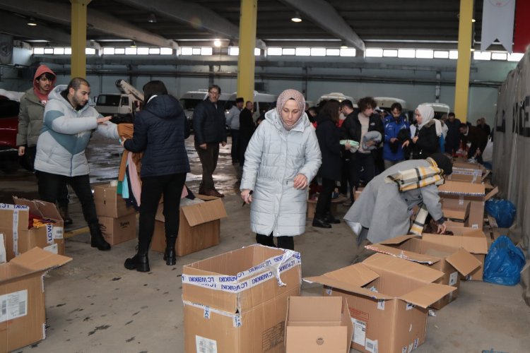 Yardım kampanyası kapsamında toplanan iklime uygun kullanılmamış kıyafet (mont, bot, yağmurluk, uyku tulumu, mat, çorap, atkı, bere, eldiven), battaniye, hijyen malzemeleri, bebek bezi, gıda malzemeleri, çocuk maması, ışıldak ve oyuncak gibi yardım malzemeleri ekipler tarafından tek tek kolilenerek, deprem bölgesine sevkiyata hazırlandı.
