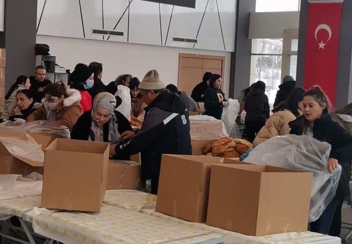 Erciyes Üniversitesi (ERÜ) tarafından depremzedeler yararına Kahramanmaraş’a konteyner mutfak ile yemekhane personeli gönderildi. Mehmet UZEL (KAYSERİ İGFA)...
