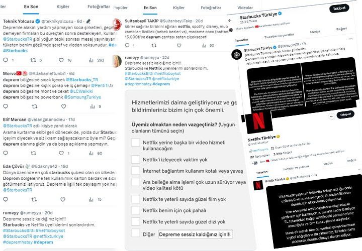 Netflix, Disney ve Starbucks, deprem nedeniyle herhangi bir açıklama ve destek yapmaması nedeniyle sosyal medyadan tepki yağdı....