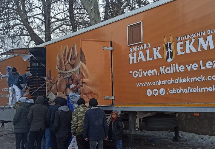 16 kişilik ekibi ile Hatay ve Elbistan’dan çalışarak mobil fırınlarda depremzedeler için sıcak ekmek üreten Ankara Halk...
