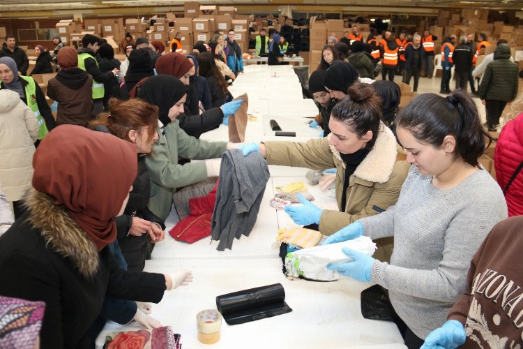 Deprem bölgesine gidecek olan ve Kocaeli genelinden gelen battaniye, ısıtıcı, soba, gıda, giyim ve hijyen maddeleri, eski Carrefour Alışveriş Merkezi’nde kurulan Ayni Yardım Kabul Merkezi’nde toplanıyor. Ayni Yardım Kabul Merkezine gelen yardım malzemeleri, ürün çeşidine göre ayrıştırılıp paketlenerek tırlara yüklenip, deprem bölgesine gönderiliyor. Ürünlerin ayrıştırılması, paketlenmesi ve tırlara yüklenmesinde, Büyükşehir personelleri, gönüllüler ve diğer vatandaşlar canla başla sabahlara kadar çalışıyor.