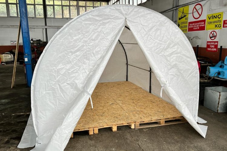 Rize Belediyesi tarafından Hatay iline çadır kent kuruyor. İçerisinde depremzedelerin tüm ihtiyaçlarını karşılayacak üniteleriyle birlikte 200 çadırlık çadır kent için Rize Belediyesi atölyesinde imalat çalışmaları devam ediyor.