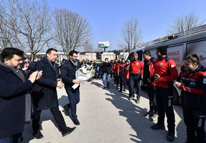 Kahramanmaraş merkezli depremlerin ardından arama kurtarma faaliyetlerine destek vermek için bölgeye giden 38 kişilik Osmangazi Belediyesi Sivil...