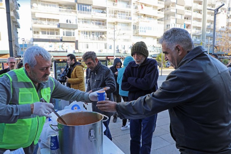 Antalya Büyükşehir Belediyesi’nin Doğu Garajı Kültür ve Ticaret Merkezi’nde kurduğu giyim bankasına ihtiyaçlarını karşılamak için gelen depremzedelere sıcak çorba ikramı yapıyor.