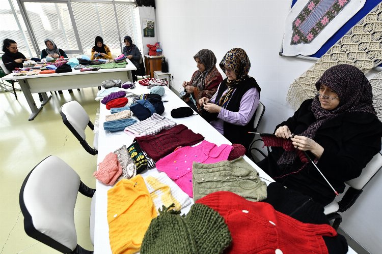 Bursa’da Osmangazi Belediyesi Meslek Edindirme Kursları (OSMEK) bünyesinde faaliyet gösteren el sanatları kursiyerleri, Kahramanmaraş başta olmak üzere 10 ilde büyük yıkımlara neden olan depremin yaralarını sarabilmek için atkı, bere, eldiven gibi çeşitli ürünler örüyor.