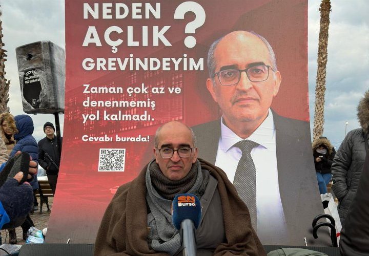Mudanya Belediyesi önünde açlık grevi yapan Robotik Ortopedi Cerrahi Derneği (ROCD) Başkanı Op. Dr. Kayhan Turan, Belediye...