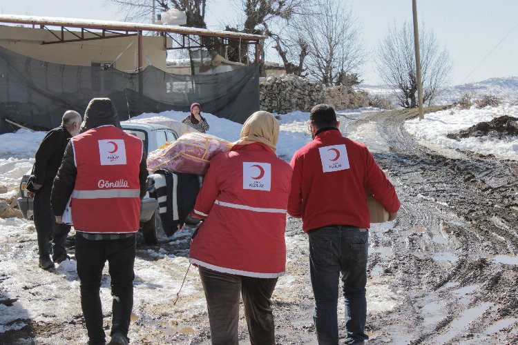 Kızılay ekipleri temel beslenme ihtiyacı bulunduğu bilgisi alınan 5 ilde 1648 köye kara yolu, off road gönüllüleri ve TSK’ya ait helikopterlerle yardım ulaştırdı.