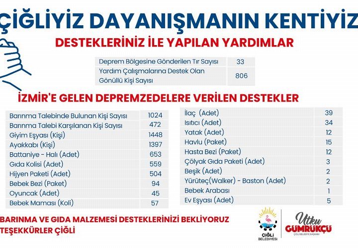İzmir’de Çiğli Belediyesi’nin öncülüğünde, depremden etkilenen yurttaşların yaralarını sarmak amacıyla başlatılan dayanışma kampanyası afetin 12. gününde Çiğli...
