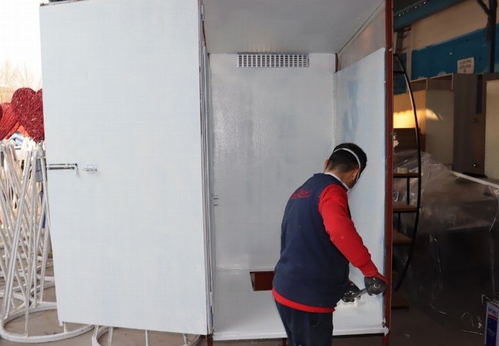 İzmit Belediyesi Fen İşleri Müdürlüğü ekipleri tarafından deprem bölgesinde kullanılmak üzere portatif tuvalet imalatı başladı KOCAELİ (İGFA)...