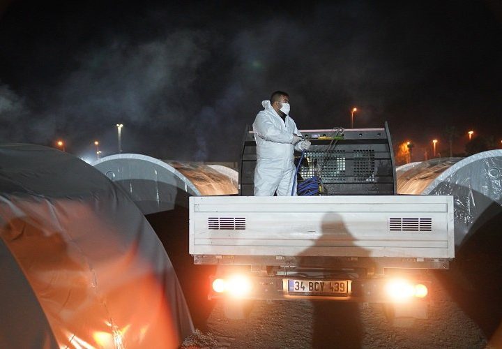 Beylikdüzü Belediyesi’nin Hatay İskenderun’da 70 dönümlük bir alanda kurduğu çadır kentte olası salgın hastalıklara karşı ilaçlama ve...
