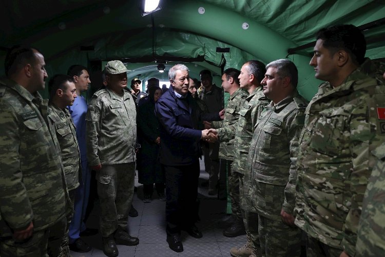 Türk Silahlı Kuvvetlerinin, Kara, Deniz ve Hava Kuvvetlerinin tüm unsurlarının, karargâh ve birliklerinin ilk andan itibaren seferber olduğunu, AFAD ve valiliklerin koordinesinde görevinin başında olduğunu vurgulayan Bakan Akar, Azerbaycan’dan gelerek hastanede görev alan 12 askerî hekim ve 8 hemşireye de çalışmalarından dolayı teşekkür etti.