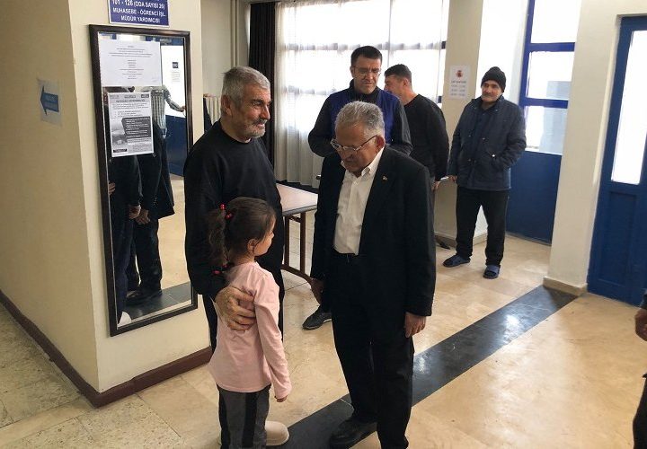 Kayseri Büyükşehir Belediye Başkanı Dr. Memduh Büyükkılıç, deprem bölgelerinden kente gelen depremzedelerin kaldığı Erciyes KYK Erkek Yurdu...