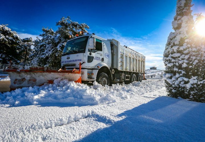 Gaziantep Büyükşehir Belediyesi gece saatlerinde şehir merkezinde etkili olan kar yağışı ile beraber ana arterlerde çalışmaları sürdürürken...