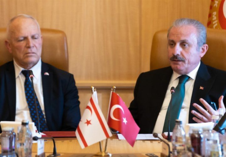 TBMM Başkanı Prof. Dr. Mustafa Şentop, KKTC Cumhuriyet Meclisi Başkanı Zorlu Töre ve beraberindeki heyetle Mecliste bir...