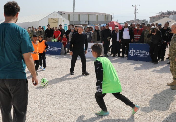 Kocaeli Büyükşehir’in Hatay Defne’de kurduğu çadır kenti ziyaret eden Milli Savunma Bakanı Akar, mini sahada çocuklarla futbol...
