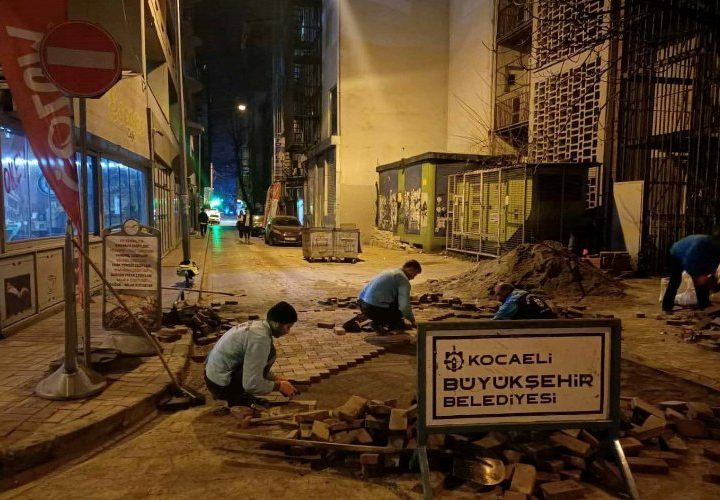 Kocaeli Büyükşehir Belediyesi Yol Bakım Timi, yaya ve araç trafiğini aksatmamak için çalışmalarını gece geç saatlerde yapıyor....