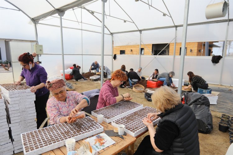 İzmir Efes Selçuk Belediyesi tarafından afet bölgesinde depremden etkilenen üreticilere destek sağlamak amacıyla başlatılan fide dayanışması gönüllü kadınların Efes Tarlası Yaşam Köyü’nde fide dikimi ile başladı.
