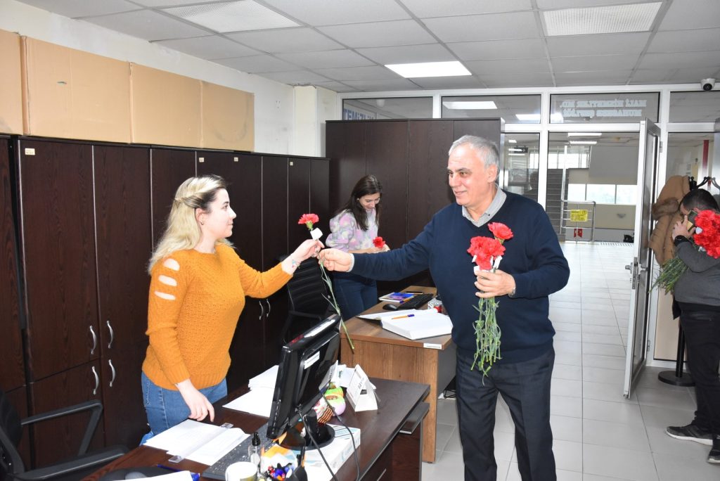 Edremit Belediye Başkanı Selman Hasan Arslan adına Başkan Yardımcısı Tayfun Gerkuş, belediye hizmet binasında görev yapan kadın personele karanfil vererek 8 Mart Dünya Emekçi Kadınlar Günü’nü kutladı.