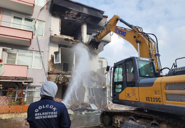 Gölcük Kavaklı Mahallesi’nde meydana gelen patlamada ağır hasar alan 3 katlı binanın yıkım ve enkaz kaldırma çalışmaları...
