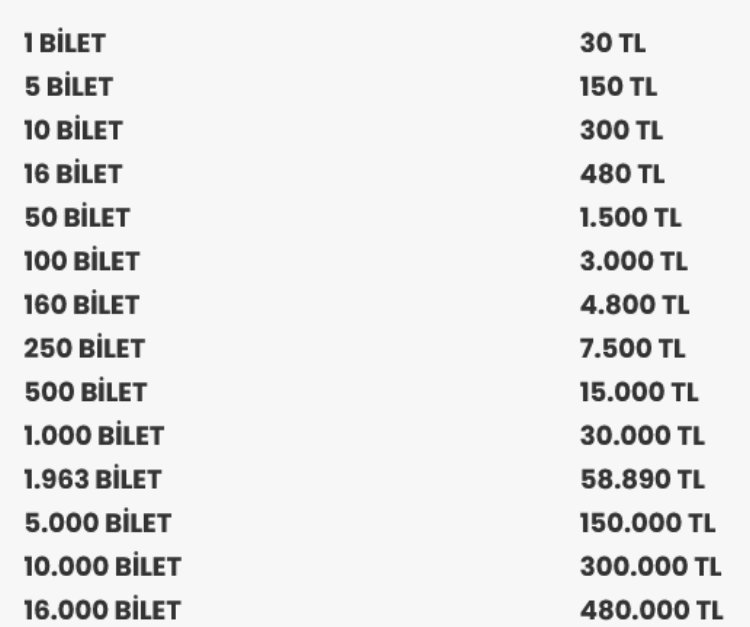 Toplam 14 kategori olarak satışa sunulacak Yadigar Hatıra Biletleri’nin fiyatlarını da interet sitesinde yayımlayarak satışa çıkaran kulüp, her bir bilet fiyat için 30 TL olarak belirledi.
