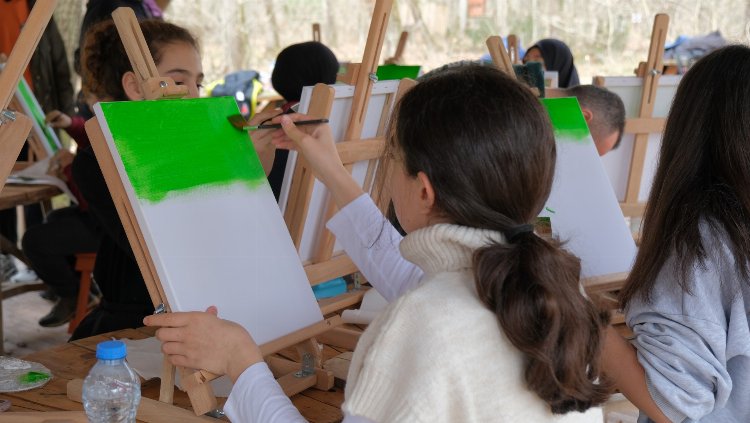 Depremzede çocuklara alanında uzman eğitmenler de eşlik etti. Eğitmenler eşliğinde gerçekleşen eğitimlerde, çocuklar özel olarak hazırlanan tuvalleri boyadı ve yaprak baskısıyla ilk eğitimlerini gerçekleştirdi.
