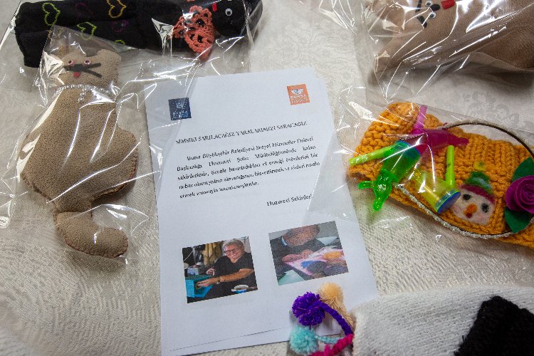 Asrın felaketinin yaralarını sarmak için tüm ülke adeta seferber olurken, Bursa Büyükşehir Belediyesi Huzurevi sakinlerinin el emeği olan atkı, bere, eldiven, süs eşyası gibi ürünler, depremzedelerin hem bedenlerini hem de yüreklerini ısıtacak.