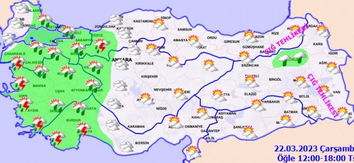 Ülke genelinin parçalı ve çok bulutlu, Marmara, Ege, Batı Akdeniz, İç Anadolu(Sivas hariç), Batı Karadeniz, Orta Karadeniz’in iç...