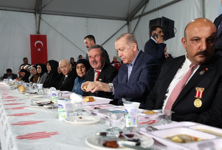 ANKARA (İGFA) – Cumhurbaşkanı Recep Tayyip Erdoğan, beraberindeki MHP Genel Başkanı Devlet Bahçeli ve BBP Genel Başkanı Mustafa Destici ile 6 Şubat’ta depremlerin merkez üssü Kahramanmaraş’taki Karacasu Konteyner Kent’te şehit, gazi ve depremzede ailelerle iftar yaptı.