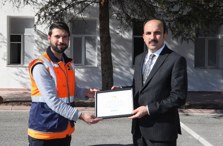 Konya Büyükşehir Belediye Başkanı Uğur İbrahim Altay, Hatay’da nöbetini tamamlayıp dönen Konya Büyükşehir Belediyesi çalışanlarına teşekkür belgesi...