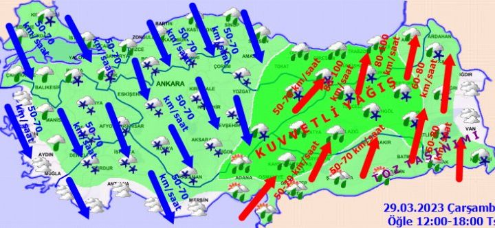 Ülke geneli hava çok bulutlu ve karla karışık yağmur ve kar şeklinde olması beklenirken, Meteoroloji, kuvvetli yağış...