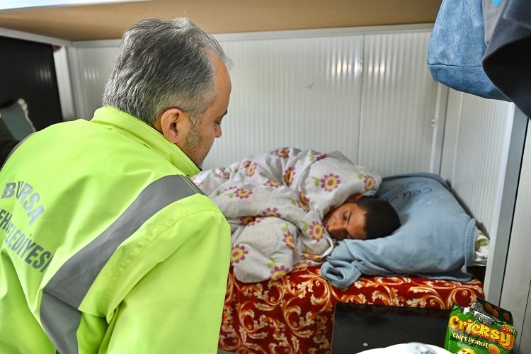 Bursa Büyükşehir Belediye Başkanı Alinur Aktaş, Hatay’da kitap talebi karşılanan küçük depremzede Mehmet Sefa’yı kaldığı çadırda, yüzde 99 fiziksel ve zihinsel engelli Mehmet Ali Aşkar’ı da Büyükşehir tarafından temin edilen konteynerde ziyaret etti.
