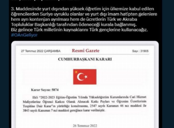 Ata İttifakı Cumhurbaşkanı adayı Dr. Sinan Oğan’ın İmam hatipli Suriyeli öğrencilerin ücretleriyle ilgili iddiaları İletişim Başkanlığı’nın Dezenformasyon...