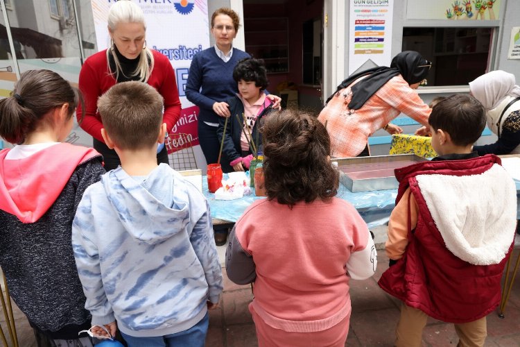 Dünya Otizm Farkındalık Günü’nde toplumsal farkındalığın ve duyarlılığın artırmasını hedefleyen KO-MEK, otizmli bireylerle ebru uygulaması yaptı.