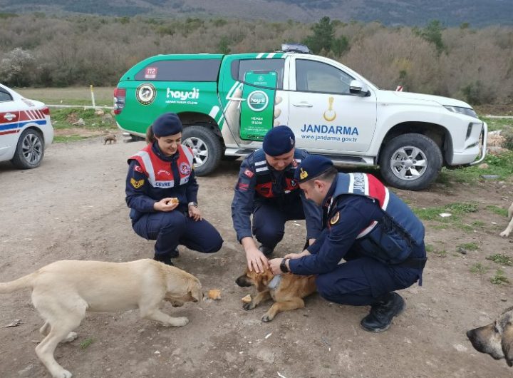 Bilecik İl Jandarma Komutanlığı Çevre, Doğa ve Hayvanları Koruma Tim Komutanlığı ekipleri sokak hayvanlarının gece şartlarında trafik...