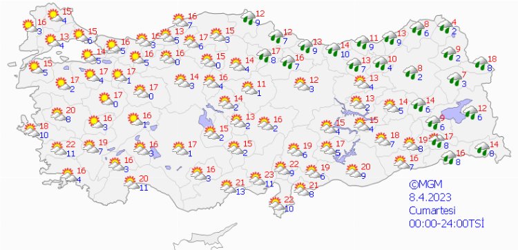 Hava sıcaklıklarının iç ve batı kesimlerde 2 ila 4 derece azalacağı, diğer yerlerde önemli bir değişiklik olmayacağı, genellikle mevsim normalleri civarında seyredeceği tahmin ediliyor.