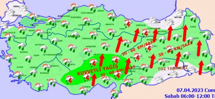 Meteoroloji 7 Nisan hava durumu raporunu yayımladı. Yayımlanan raporda göre Türkiye genelinde 5 boyunca gök gürültülü sağanak,...