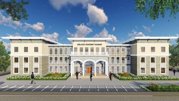 Kocaeli’de depreme dayanıksız olduğu belirlenerek yıkılan ve yeniden yapım çalışmaları başlayan Gölcük Hükümet Konağı’nda yapım çalışmaları hızla sürüyor.