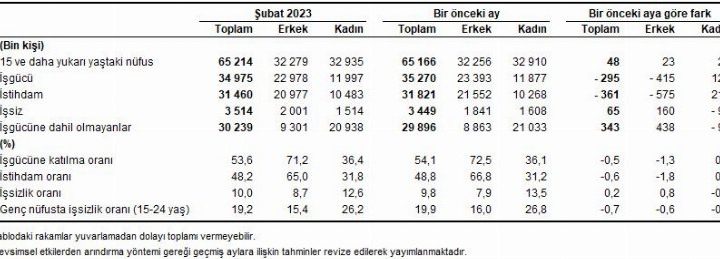 İşgücü İstatistiklerini yayımlayan TÜİK, işsizlik oranının Şubat ayında yüzde 10 olarak gerçekleştiğini duyurdu. ANKARA (İGFA) – Hanehalkı...