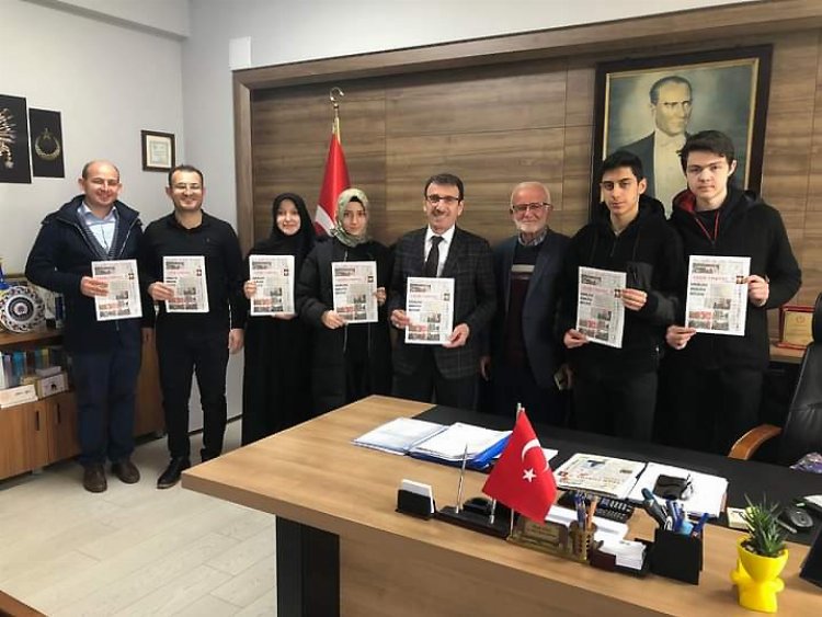 Okullarında gazete çıkaran Yenişehir Ertuğrul Gazi Anadolu Lisesi öğrencileri, Belediye Başkanı Davut Aydın’ı makamında ziyaret ettiler. Öğrenciler tarafından kaleme alınan gazeteyi inceleyen Başkan Aydın, “Öğrencilerimiz gazetenin satışında elde edilen geliri AFAD aracılığıyla deprem bölgemize bağışladılar. Öğrencilerimizi tebrik ediyorum. Çalışan üreten gençlik oldukça her zaman başarılı oluruz” dedi.