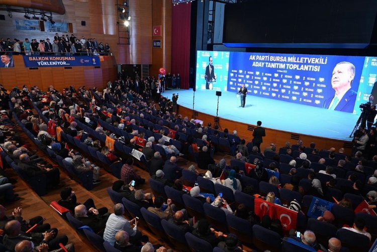 Coşkulu konuşmasına AK Parti Bursa Gençlik Kolları ve Kadın Kolları da tezahüratlarıyla destek verdi.