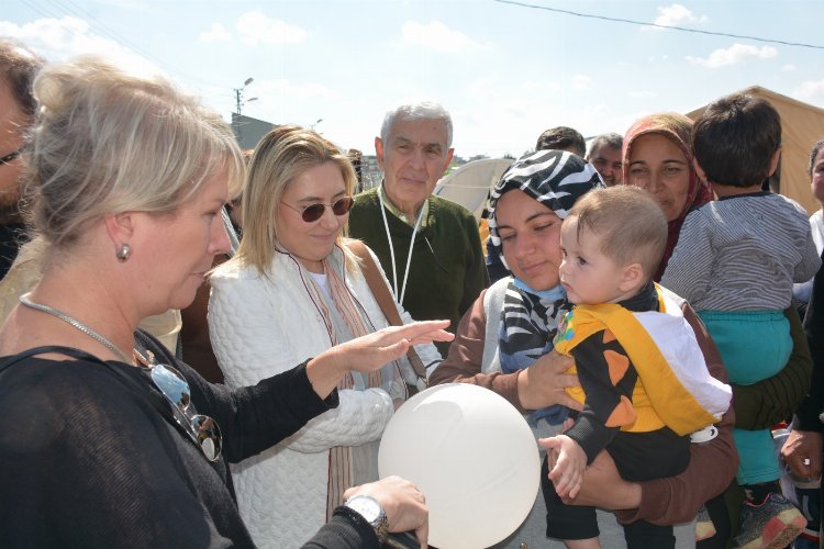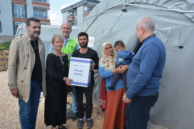 Dünya Başkanı Jennifer Jones ve beraberindeki heyet daha sonra Yunus Emre Mahallesi’ndeki çadır kenti ziyaret ederek burada çocuklarla ve depremzedelerle uzun süre sohbet eden Jones, daha sonra depremzede ailelere gıda yardımı da atarak çadırda onlarla sohbet etti.